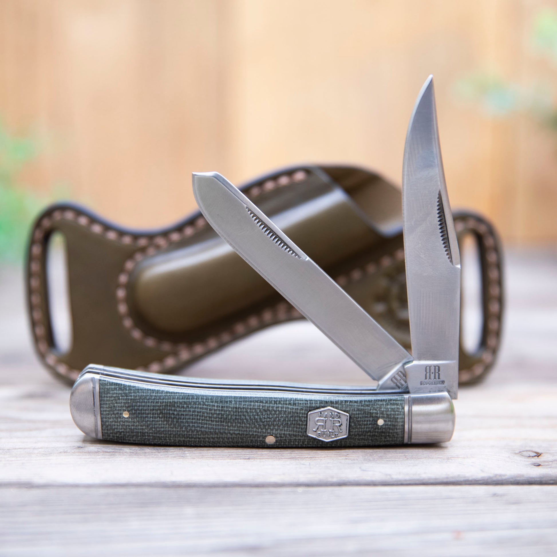 Or the Denim Micarta Rough Ryder K.n.i.f.e and sheath? Use the link below: https://lazy3leatherco.com/products/copy-of-rough-ryder-bishops-scout-carry-sheath