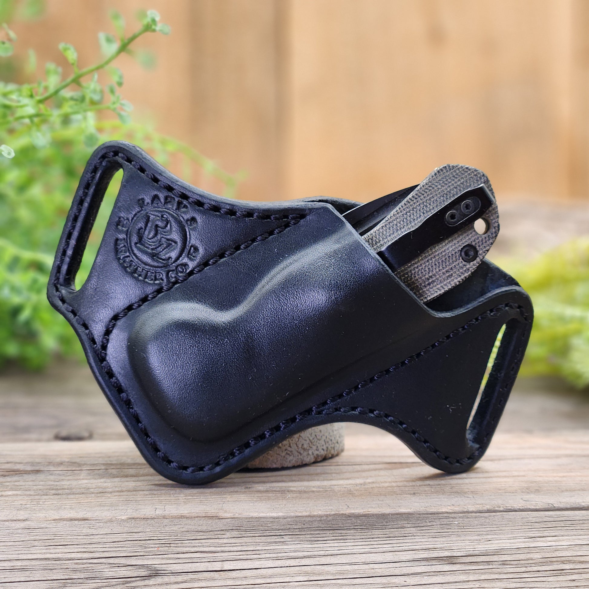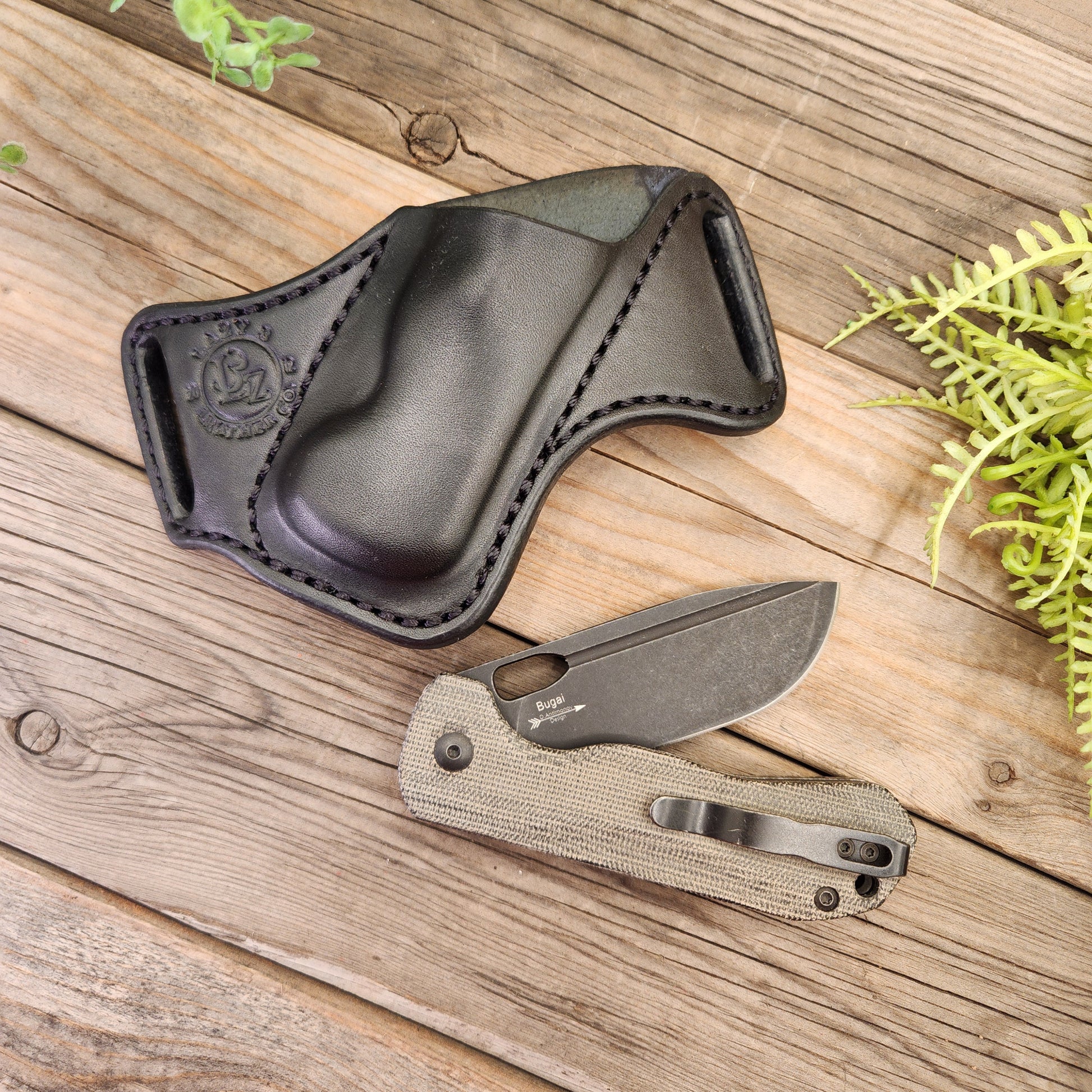 Meet the Kizer Bugai knife, paired with our handcrafted black leather scout sheath—made right here in Ivins, Utah.